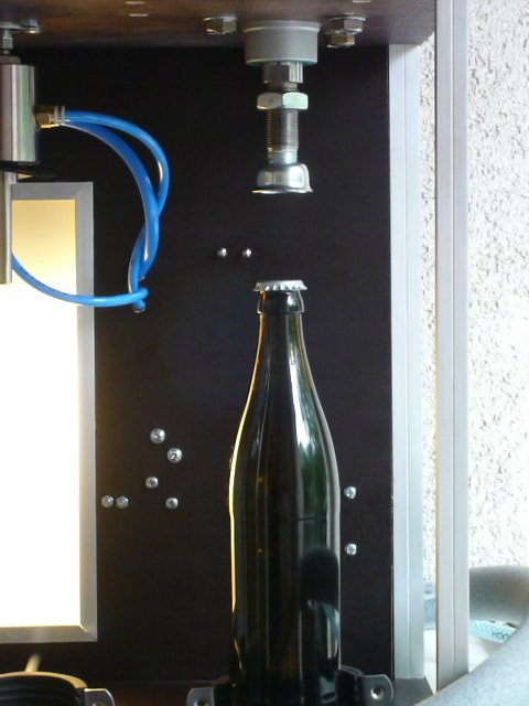 Flasche von Hand auf und lasse danach per Knopfdruck die Glocke pneumatisch